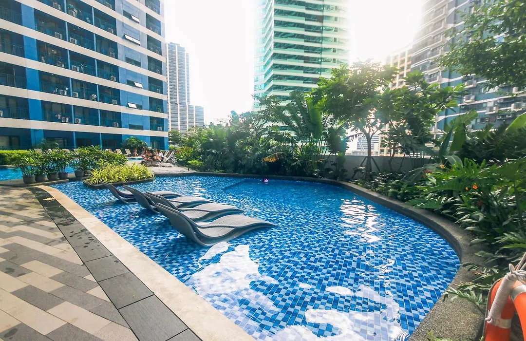 寝室1室のCanvas & Petals Blossoming Art Penthouse Gym Swim Park 5716 マニラ市アパートから歩いてわずか5分離れたCollectiveなどの市内の観光スポットへ行きやすいです。 アパートには、プールの景色を望むテラスが備わります。